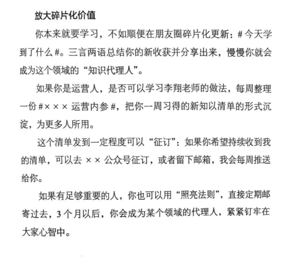 这个拆页给我们介绍了一个方法,如何利用碎片化更新,成为知识代理人。