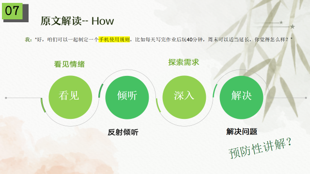 传递自身意图,寻求解决方案:(咱们可以一起制定一个手机使用规则,你觉得怎么样?”)