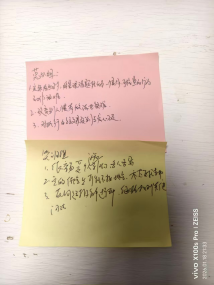 请每人用一句话写在便签上。(例如:“规矩定的不痛不痒、说完大家不当回事等等。”)