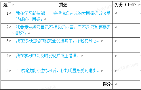 要素1:设定明确目标。比如你要练琴,那就告诉自己:“连续三次不犯任何错误、以适当的速度弹奏完曲子”,而不是“我要练琴半小时”这样宽泛的目标。目标定义越明确,注意力的感知精度就会越高,精力越集中,技能越精进。如果目标太大,那就将它分解成小目标,这样做也是为了使目标更具体、精细。