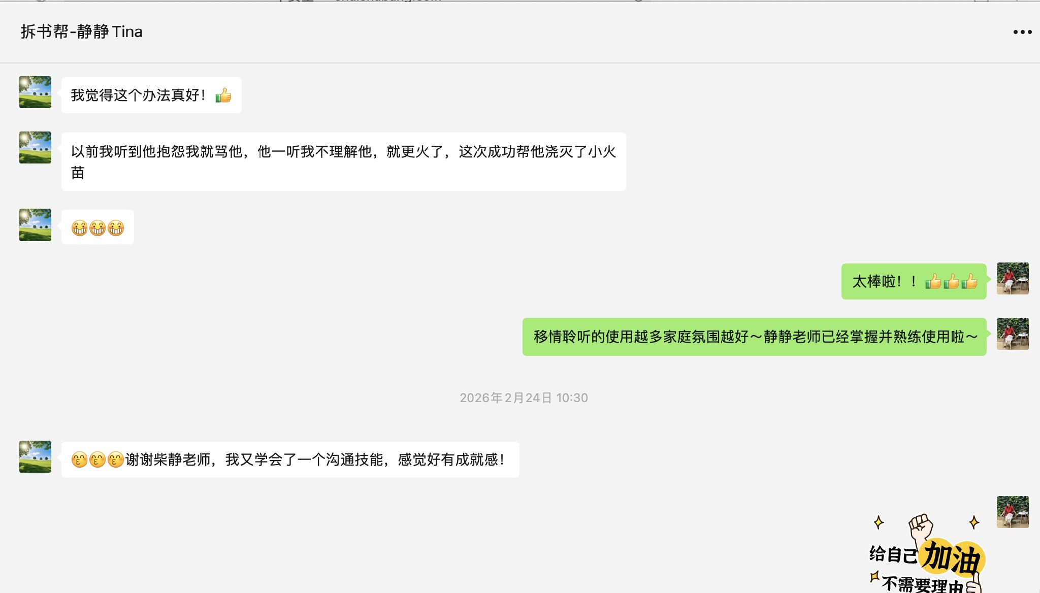 适用边界: 移情聆听更适合用在重要的人际关系中,比如家人、挚友、核心同事之间,用于深入交流、真正理解对方。 但它不适合紧急情况,也不适合一般性的日常事务回复。