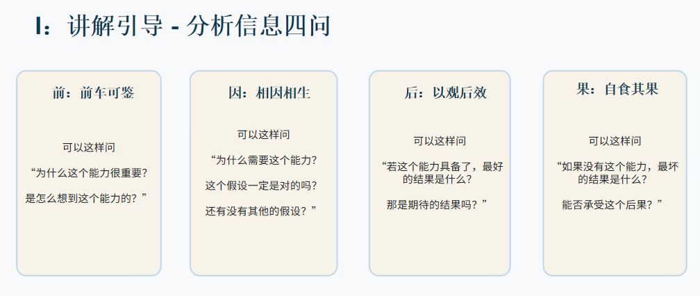 2.---因:(相因相生)可以这样问“为什么需要这个能力?这个假设一定是对的吗?还有没有其他的假设?”