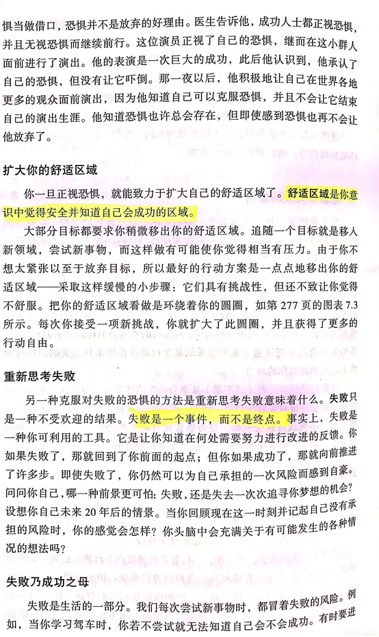 我的第二个拆页节选自《成功心理学》P275页,这个片段的学习目标是通过我的带拆,大家学习克服对失败的恐惧有哪些,并应用来分析自己遇到的问题。